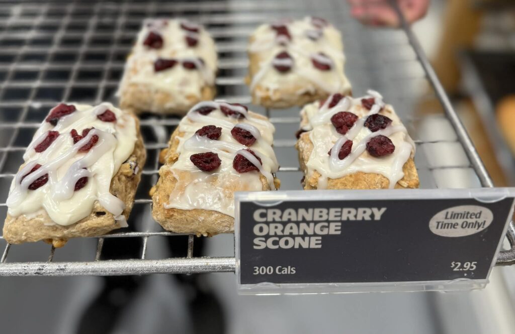 Cranberry Orange Scones – A fan favorite returning just in time for the holidays! Bursting with zesty orange and tangy cranberries, baked fresh from scratch every day. Would pair well with a coffee…or a mimosa!